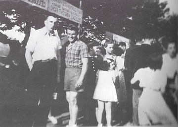 Avec un ami, lors d’un 14 juillet à la Butte Rougeannées 50 (au mileu, en short)